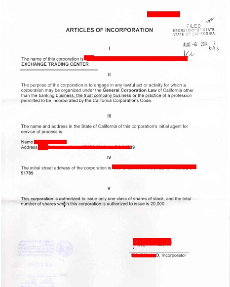 客戶廖先生想在美國設(shè)立一間公司開展金融類業(yè)務(wù),雖然我們之前一直說在美國尤其是加州注冊公司名稱選擇上無特殊限制,但是畢竟涉及金融比較敏感,如果直接注冊銀行是需要美國特殊部門審批的,所以在鷹飛顧問的建議下廖先生以中心為結(jié)尾的公司,名稱按照自己的喜好確定,最終在加州注冊成功。
