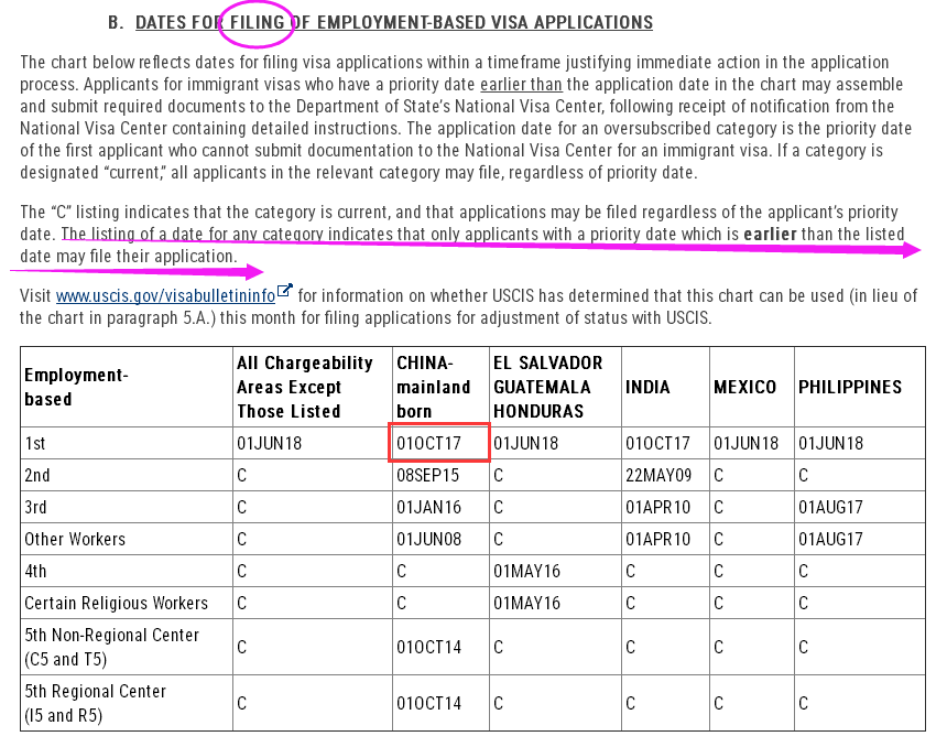 表A,EB-1中國,優(yōu)先日(即I-140申請(qǐng)受理日期)在2016年12日15日之前的申請(qǐng)人,現(xiàn)在可進(jìn)入批復(fù)簽發(fā)程序,比上個(gè)月前進(jìn)3個(gè)半月(圖一),而上個(gè)月公布的排期表也是大步前進(jìn)3個(gè)月。